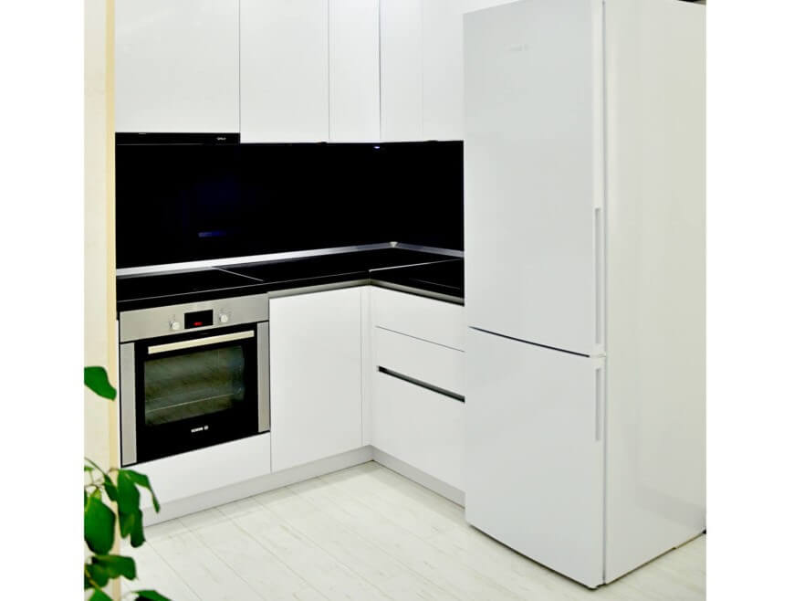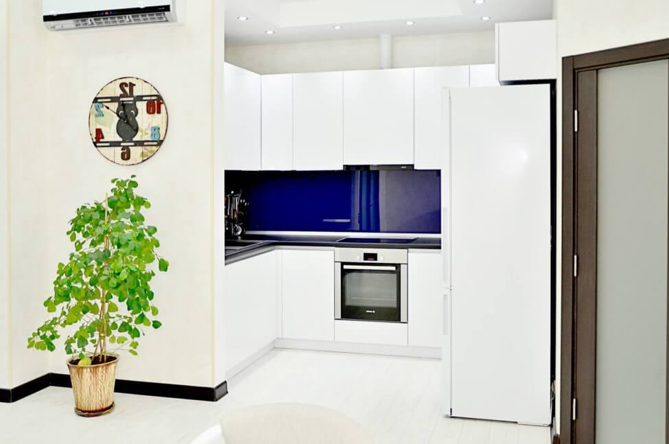 Мини-кухня П-образной формы - идеально для помещения с ограниченными квадратными метрами. При своей компактности гарнитур очень вместительный и функциональный. За счет цвета кухня эстетично гармонирует с интерьером квартиры.